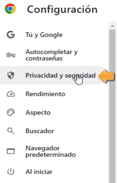 3. Te diriges al menú del lateral izquierdo, y seleccionas Privacidad y seguridad.