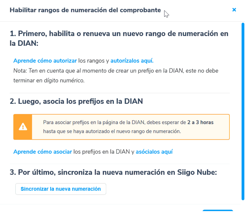 Seguido, podrás revisar cómo asociar los rangos de numeración o prefijos del documento soporte en la DIAN. Asimismo, contaras con el enlace de la DIAN para realizarás el proceso.