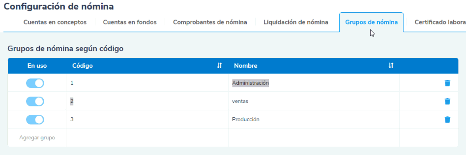 Importante: si deseas crear más grupos o departamentos, puedes ubicarte en la sección de “grupos de nómina”, y será necesario asignarle uno a uno los conceptos de nómina.