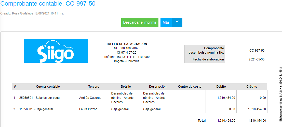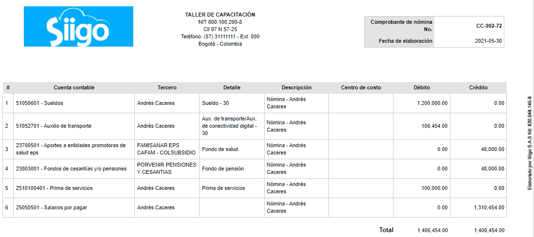 Este proceso te permite registrar el movimiento contable de la Nómina Electrónica Lite por medio de comprobantes contables en tu Siigo Nube.