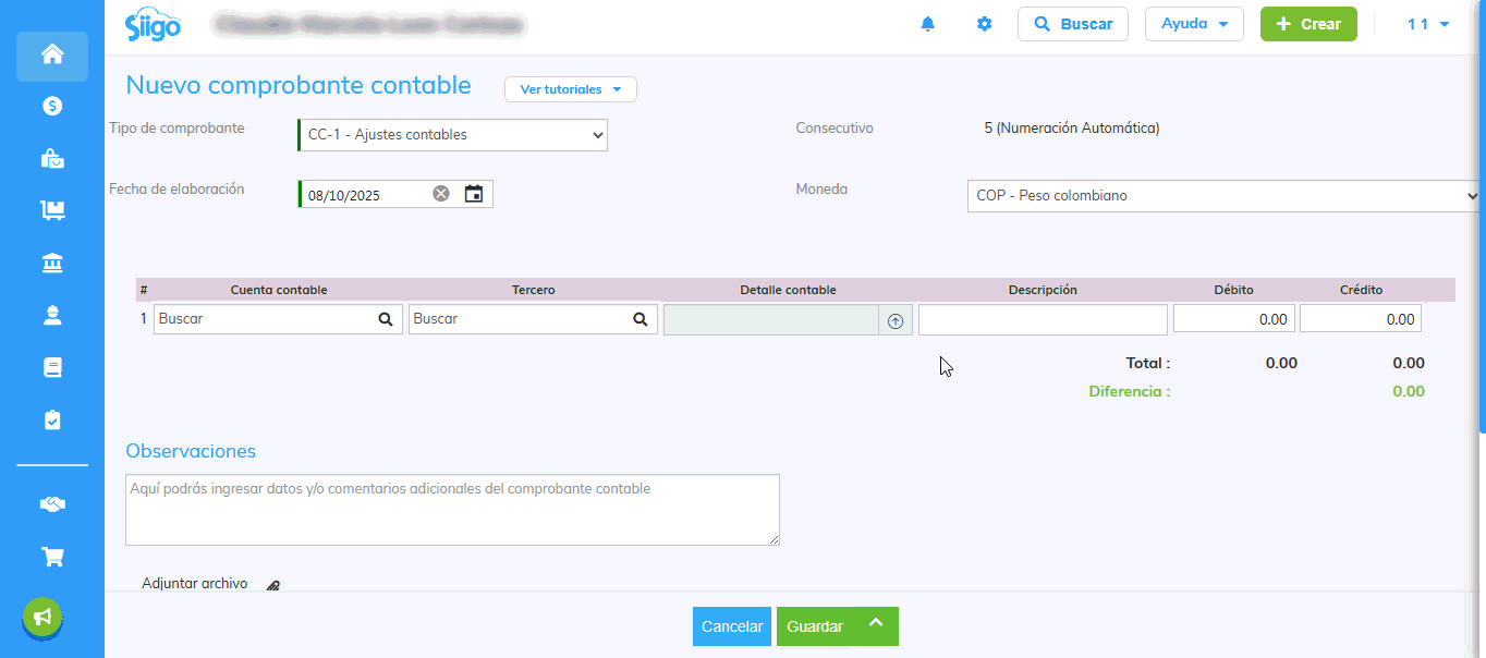 - Débito/ Crédito: ingresas los valores según corresponda contablemente.