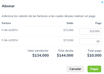 Pagos productos Siigo: aquí encontrará las facturas que tengas pendiente con nosotros, estas puedes pagarlas o hacer un abono, adicional tendrás la información de un contacto de facturación que servirá para enviar las facturas en un futuro.