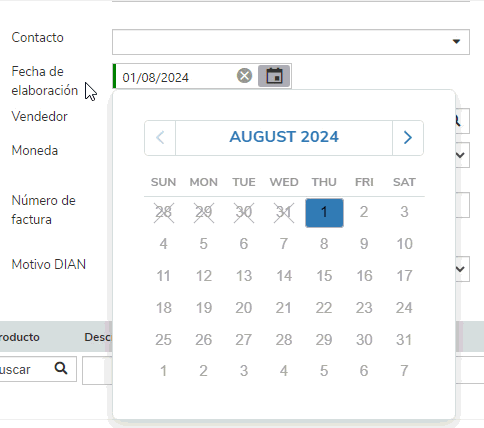 Importante: En el caso de que la factura electrónica cuente con el evento de aceptación expresa o aceptación tácita, o la hayas generado en otro software, puedes elaborar una nota crédito electrónica sin una factura de referencia.