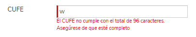 Importante: la longitud del código CUFE es de 96 caracteres.