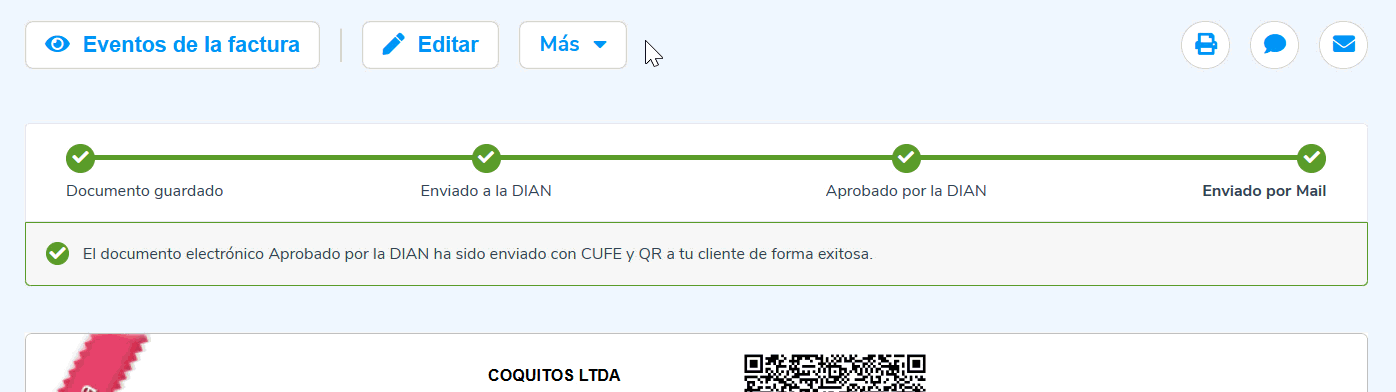 2. En la visita de la factura electrónica seleccionas el botón Más