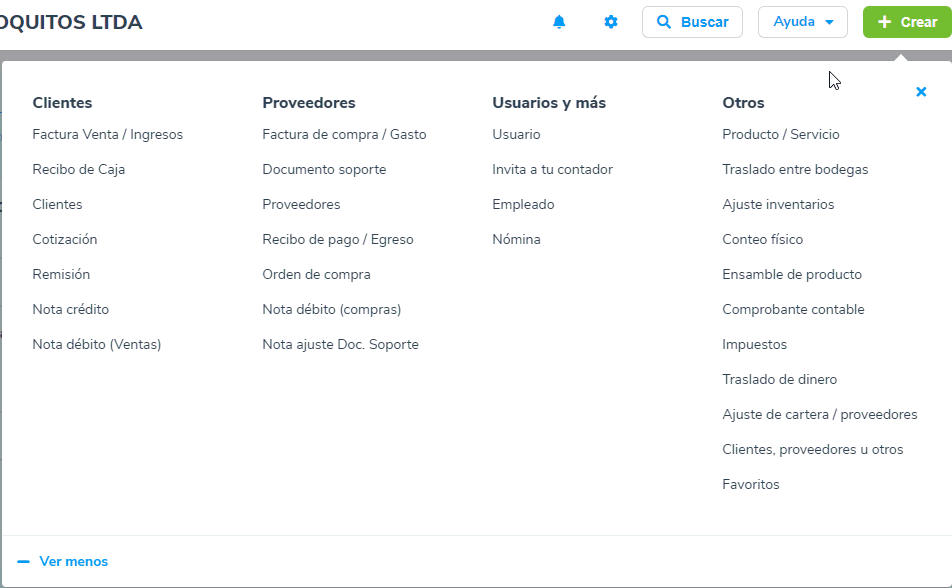 1. Desde el botón + Crear