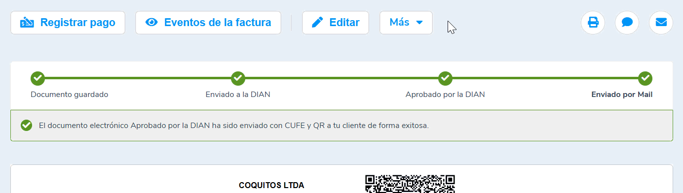 2. En la visita de la factura electrónica seleccionas el botón Más