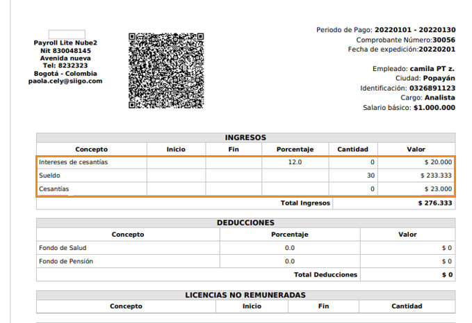 4. Se incorporará el concepto de cesantías al detalle, donde podrás agregarlas o removerlas según lo requieras: