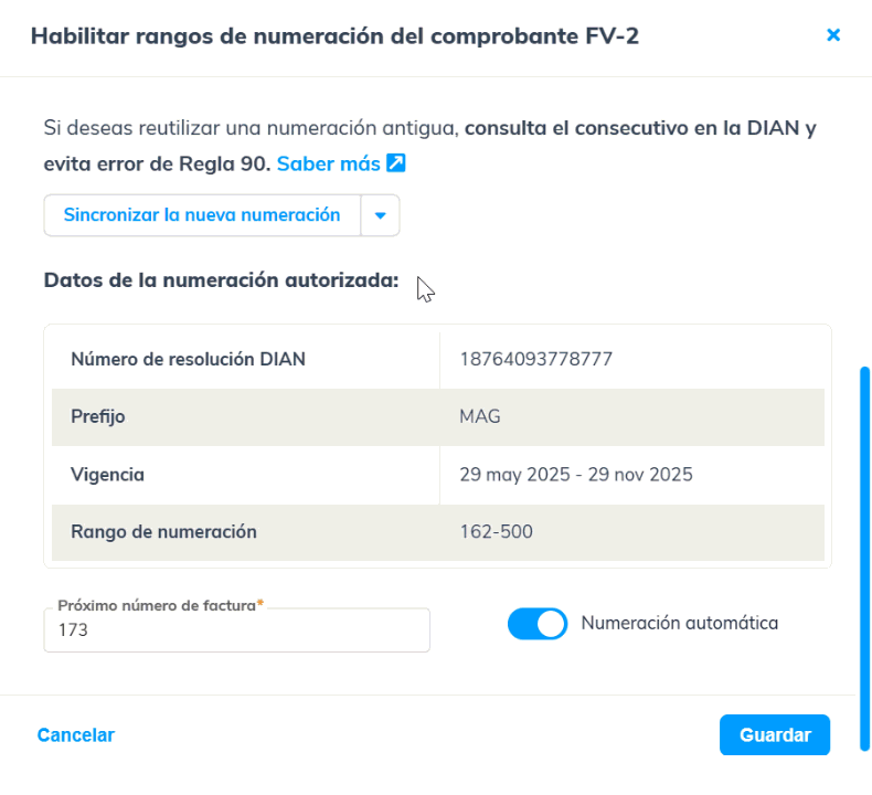 – Habilitaciones DIAN – Ventas – Sincroniza tu resolución.