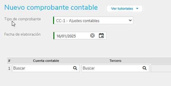 - Tercero: eliges el tercero relacionado con el movimiento contable.