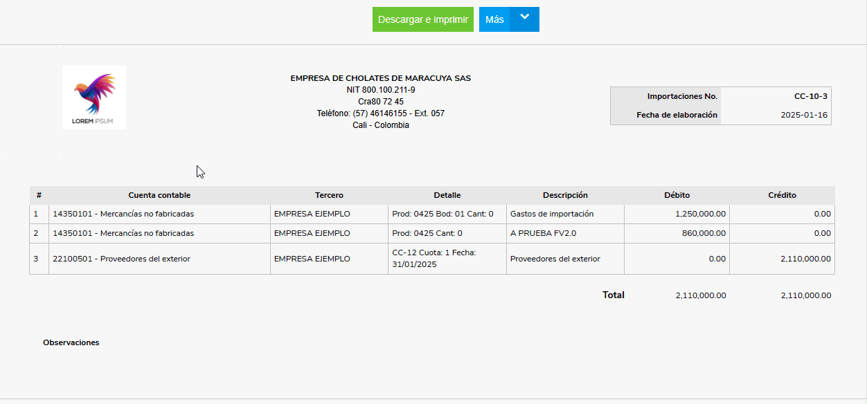 Una vez realices tu factura de compra, por medio de un comprobante contable podrás contabilizar todos los conceptos por las importaciones que maneje la empresa.