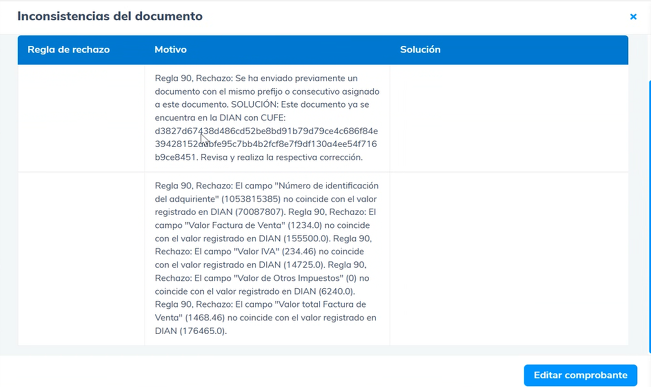 La regla 90 es un motivo de rechazo por parte de la DIAN, que aparece cuando envías una factura electrónica, con un prefijo y número consecutivo que ha sido utilizado anteriormente.
