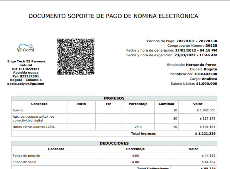 - Descargar o imprimir tu documento soporte en PDF, con la aprobación de la DIAN.